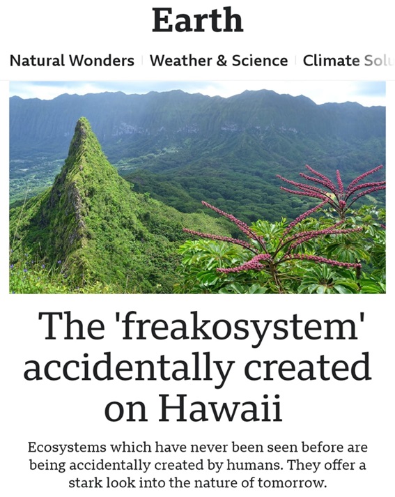 O mesmo não acontece com o Havaí, o que é uma profunda lástima, dado que aquele arquipélago é o pedaço de terra mais distante de um continente de todo planeta (“no meio do maior oceano”, como uma vez respondi ao Crawley, que perguntou numa aula no Imperial College qual seria o modelo máximo da Teoria de Biogeografia de Ilhas – ele respondeu, “sim, não fossem os americanos”!). essa semana a BBC soltou um artigo superinteressante, sobre esses novos ecossistemas, reorganizados pelo grande conjunto de novas espécies que o compõe.