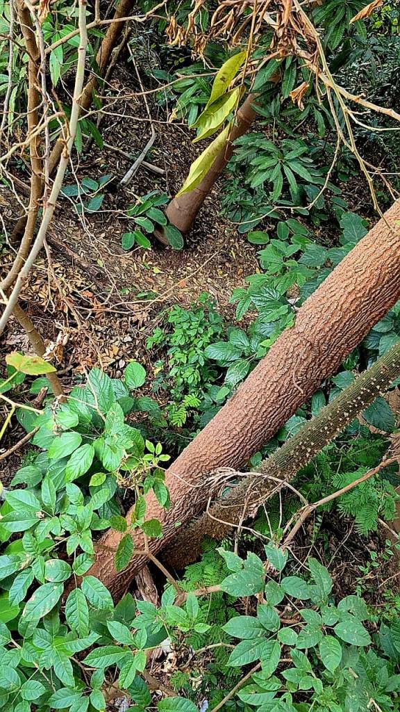 Hoje o lugar tem estratificação do dossel, com árvores emergentes, um miolo mais denso e úmido, e um dossel inferior. Também tem um lindo sub-bosque, com uma espessa camada de folhedo (mas não excessiva, que refletiria uma incapacidade de decomposição), espécies de sombra (usuais em jardinamento de prédios, um aspecto importante nessa reflexão), e plântulas (bebezinhos de árvores) germinando espontaneamente.
