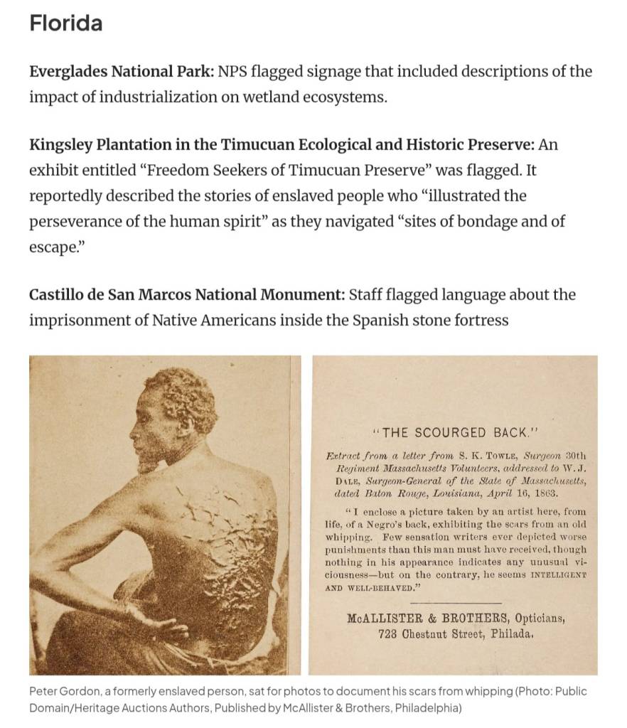 Bem, aqui dá até vontade de chorar. De repente, tu vê os caras detonando sua própria história, apagando deliberadamente resquícios do sofrimento e da contribuição indígena e negra na construção daquela nação nada tão branca, nem tão grande (não mais)! O que foi feito pelo atual governo do Trump para não mostrar ao público as contradições e crueldades coloniais é algo de nível nunca antes visto em países considerados democráticos! Segue uns exemplos: